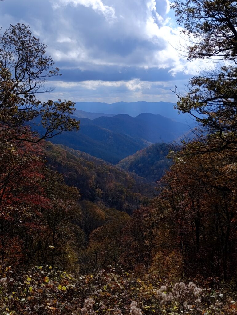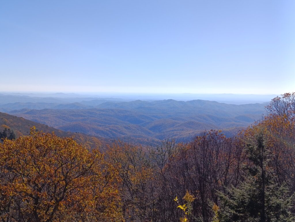 Smokies, here I am again! And this time, US‑441 wasn’t going to escape me. The Newfound Gap Road, a 31‑mile scenic drive right through the heart of the park. I stopped at almost every overlook — each view different, each one more breathtaking than the last. Multicolored trees, leaves falling slowly onto the road, the fresh autumn air running through my hair. I even turned off the music just to feel time slowing down, to enjoy every second of a leaf landing softly on the asphalt.