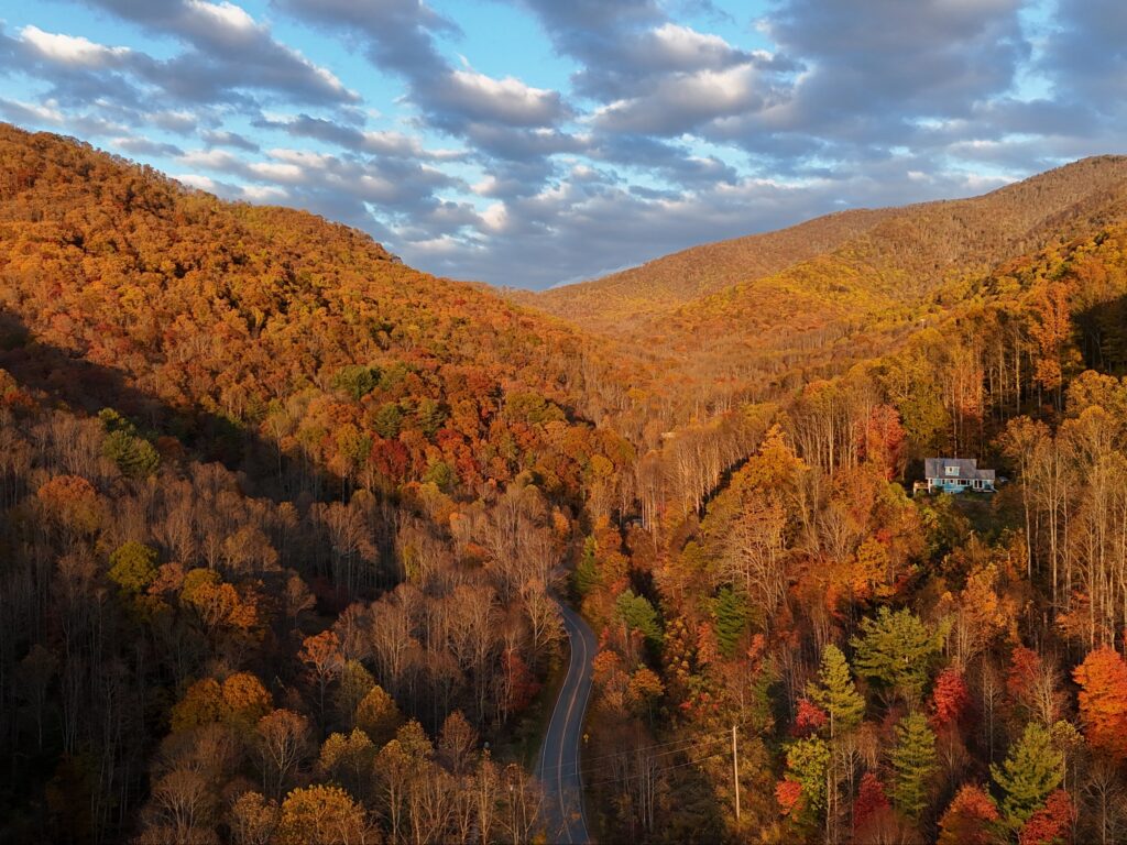 On US‑19 toward Asheville, I stopped at Lake Junaluska, a place I didn’t have time to visit during my first trip. I ate, rested, and continued toward Little Switzerland. Sometimes I feel like I can find all of Europe inside the US. I took US‑197 then US‑19E, enjoying the golden hour glowing through the mountains. The fall colors were alive, showing their very best.