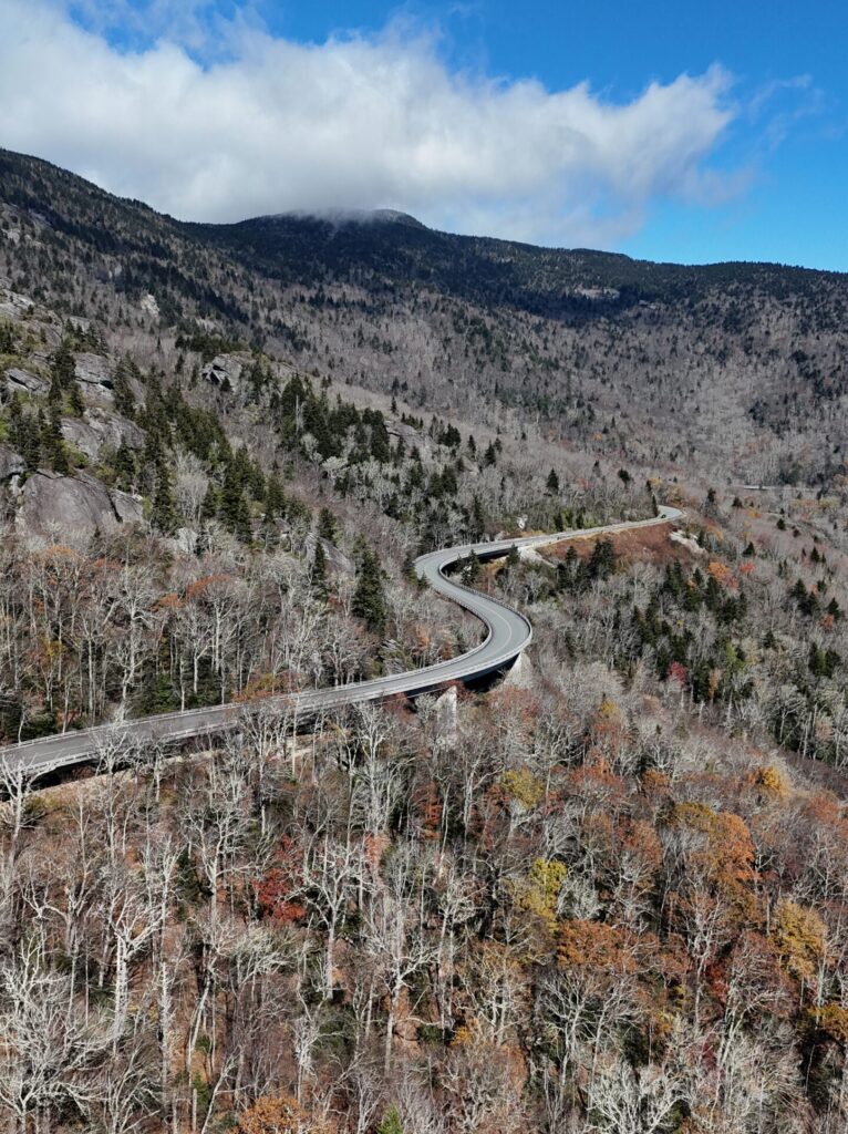 After a good night’s sleep and a calm early morning, I took US‑19E and US‑221 back toward the Blue Ridge Parkway. My goal: the famous Instagram bridge — Linn Cove Viaduct. Honestly, I drove that part back and forth several times, just enjoying the curves and the views. Maybe I was losing time, but I wasn’t here to tick boxes. I was here to feel nature, to reconnect with myself.