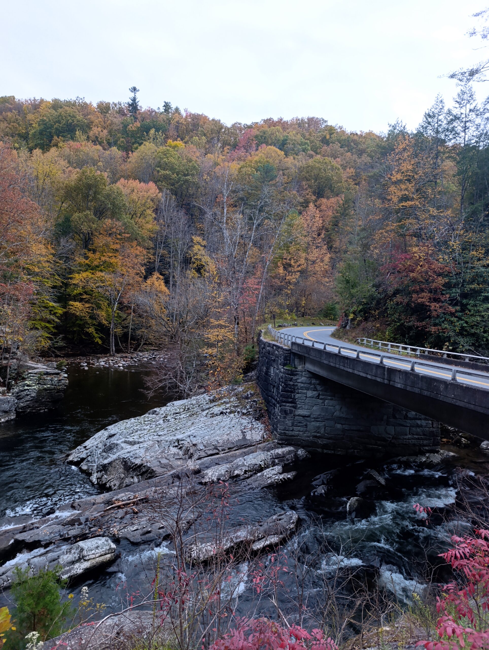 Smokies, here I am again! And this time, US‑441 wasn’t going to escape me. The Newfound Gap Road, a 31‑mile scenic drive right through the heart of the park. I stopped at almost every overlook — each view different, each one more breathtaking than the last. Multicolored trees, leaves falling slowly onto the road, the fresh autumn air running through my hair. I even turned off the music just to feel time slowing down, to enjoy every second of a leaf landing softly on the asphalt.