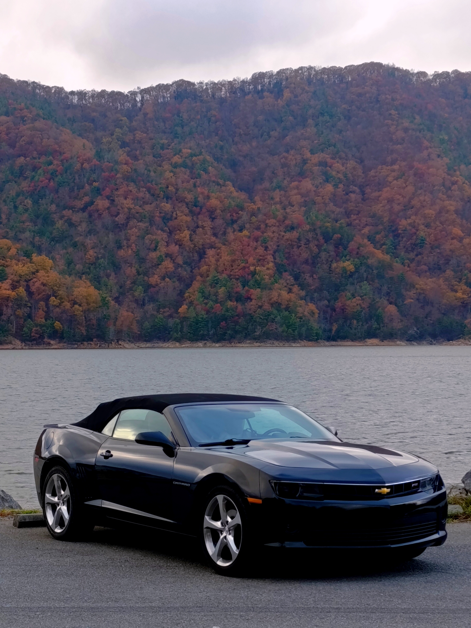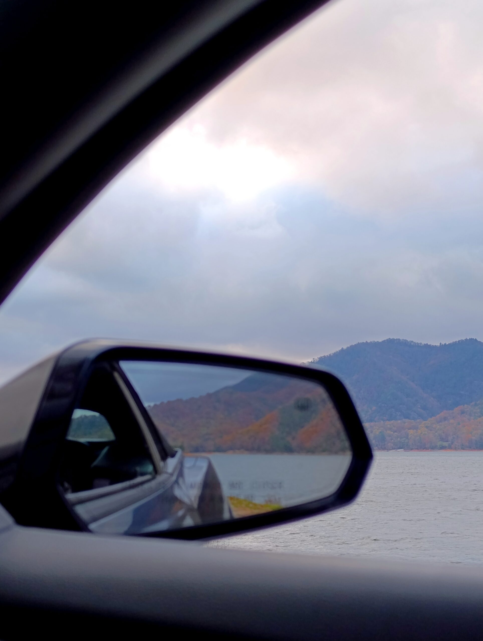 I continued toward Boone, stopping at Blowing Rock for a quick bite near Bass Lake. Then I followed US‑321 to reach Watauga Lake before sunset. I crossed the border from North Carolina back into Tennessee — just a sign, simple but symbolic. I arrived just in time to watch the sun set behind the mountains, captured through my drone. The golden colors reflected on the water, and I took pictures of my car in this magical scenery. It was cold, and very windy, but worth every second.